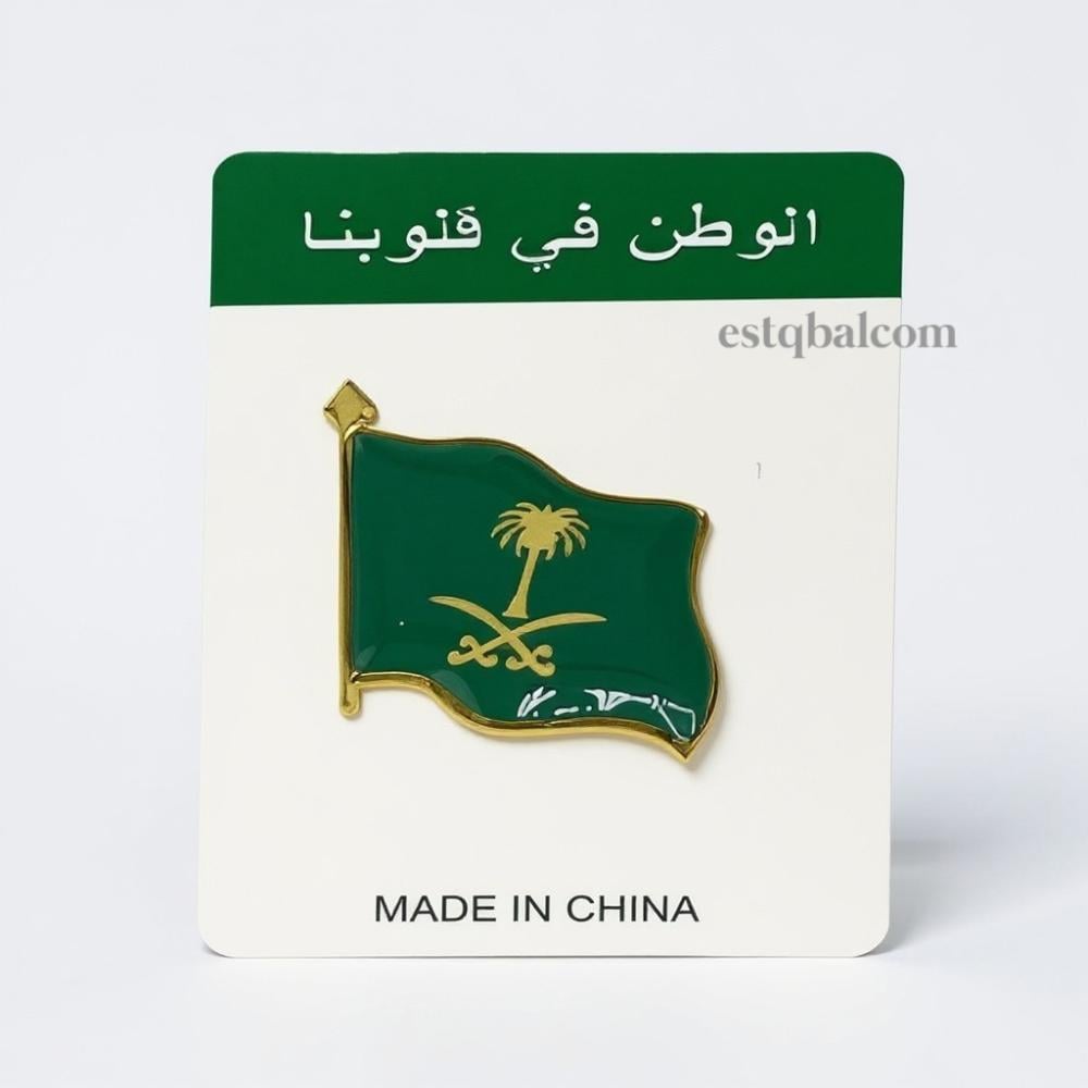 درزن (12 قطعة) بروش بتصميم “نخلة والسيفين” المتقن، مثالي ليومنا الوطني السعودي 95. خفيف الحجم، أنيق، ويمكن استخدامه كميدالية أو دعاية، مناسبة للهدايا أو توزيعات الفعاليات.