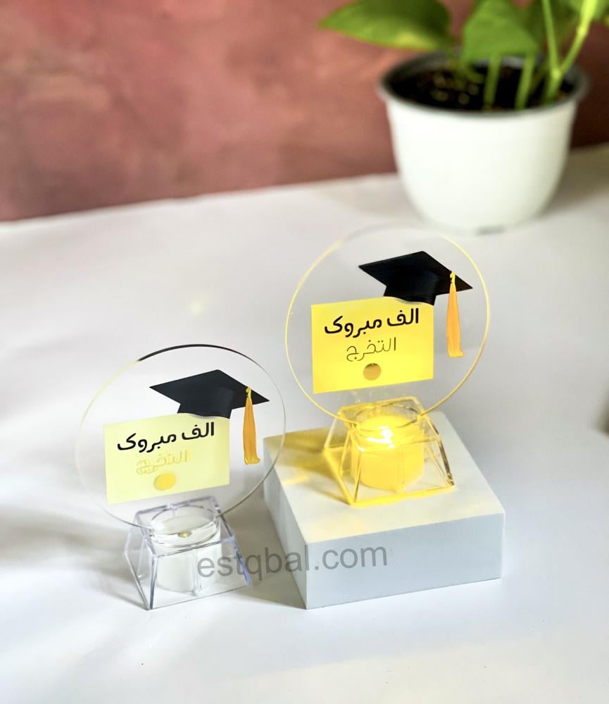 - يأتي بتصميم فريد ومميز، كما أن جملة "ألف مبروك التخرج" مكتوبة بأناقة ووضوح.