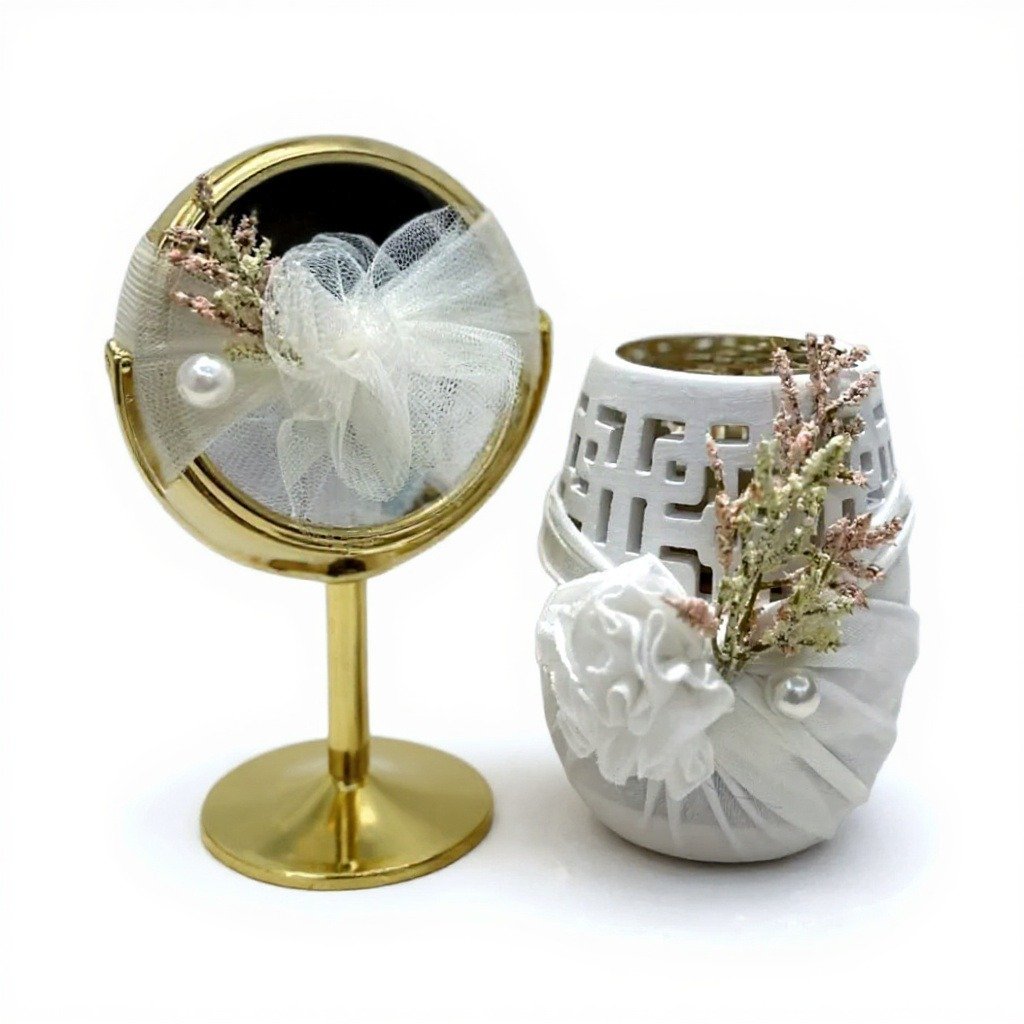 - بكج توزيعات منسقة وجاهزة مكون من 24 قطعة (12 مبخرة + 12 مرآة).