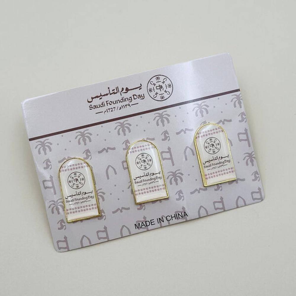 احتفل بيوم التأسيس السعودي بأسلوب مختلف تمامًا ومميز مع بروش يوم التأسيس المغناطيسي الذي يأتي في عبوة تحتوي على 4 كروت، وكل كرت يضم 3 بروشات؛ ما يجعله من الخيارات المثالية لتوزيعات اليوم التأسيس أو كهدايا تذكارية أنيقة تعكس روح المناسبة.
