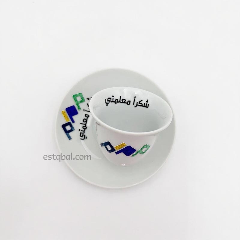 فنجال مع صحن ثيم يوم المعلم - شكرا معلمتي